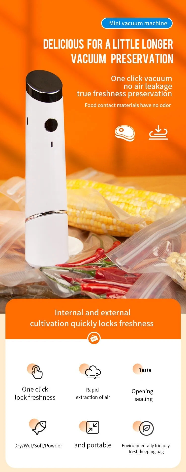 Food-grade vacuum zipper bags for food storage. Features include USB electric suction pump (optional), air valve, plastic seal, and reusable durable design to keep contents fresh. Set options include just bags or bags with an electric pump.