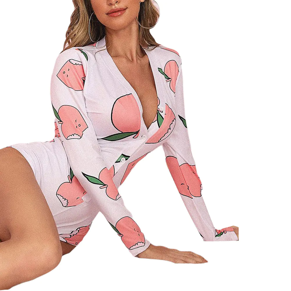 Women's Long-Sleeved V-Neck Funny Pajama Bodysuit
